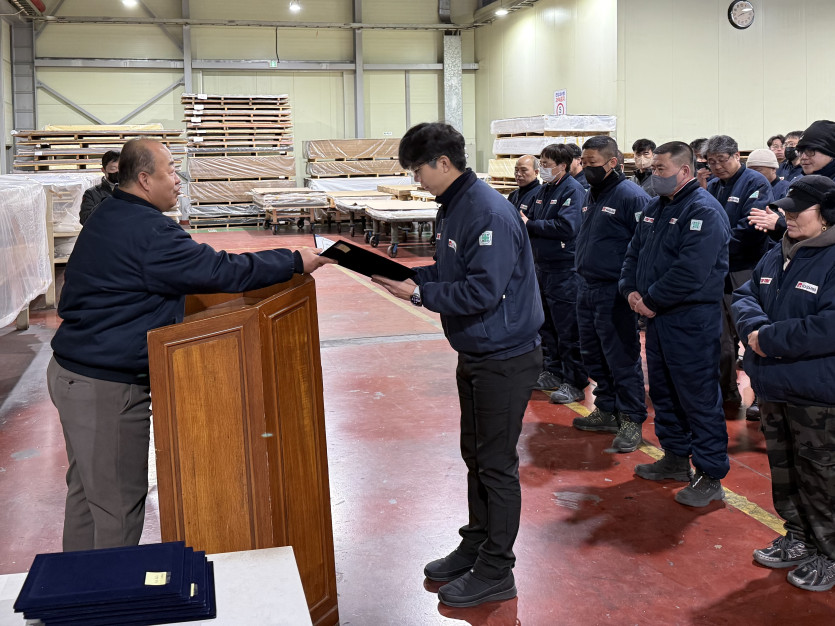 유신메라민공업 '2025년 종무식' 댓글 0건 152 작성일2025-12-31 16:44 Main text 2025년 12월 31일 유신메라민공업 종무식을 진행했습니다.승진임명, 우수사원표창 및 학자금 수여식을 하였습니다. 유신메라민공업 '2026년 시무식' 26.01.05 TOP TONE 샘플북 New Collection & New Catalogue 제작 25.12.24